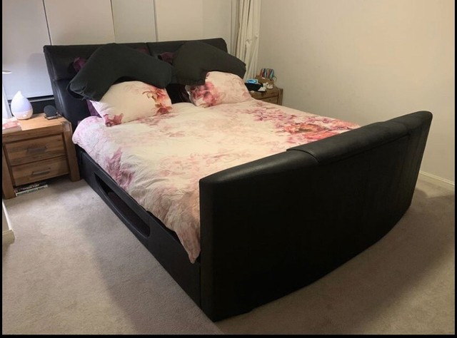 Maybe you would like to learn more about one of these? Tufted full size bed with footboard tv mount. Check spelling or type a new query. We did not find results for: